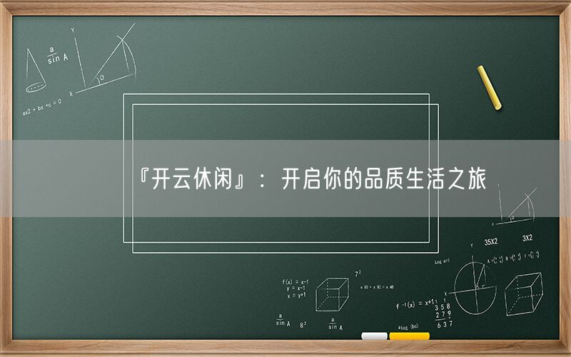 随着现代生活节奏的加快,人们越来越注重休闲生活,追求品质生活的朋友们也越来越多。在这个背景下,“开云休闲”应运而生,为广大追求品质生活的朋友们提供了一个绝佳的选择。今天,就让我们一起走进“开云休闲”,开启您的品质生活之旅。